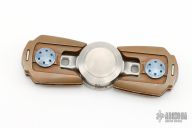 This Pepyakka 1.0 from Custom Knife Factory features titanium, copper and steel construction. #29. Includes padded and zippered case and microfiber cloth. Scuffs and scratches are visible otherwise good condition.