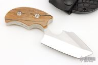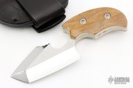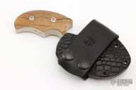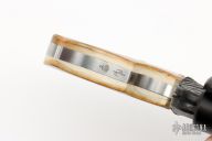 This Tactical Badger is a collaboration between Reese Weiland and Joe DeJesus features mirror polished grinds with hand rub satin finished flats, sharpened top edge, .240" blade stock and 1.539" blade depth, full tang construction. The handle has mammoth ivory scales with titanium hardware. Comes with a black leather over felt lined kydex sheath by Freddy Ramos Leather. Comes with a zippered case. New from maker.