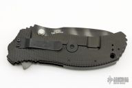 This 0301 frame-lock assisted flipper by Zero Tolerance features a recurve spear-point partially serrated blade with a tiger stripe finish, stainless steel liner green G10 scale, and black titanium scale with a black G-10 back-spacer. It also features the Speed-safe assisted opening system. Tumble finished black stainless steel clip and lock bar stabilizer. Clip is 4-way reversible. S/N 0212. Comes with original box. Excellent condition.