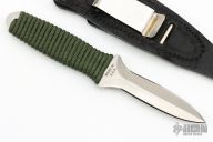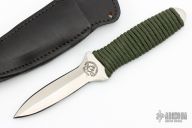 This PD-7 dagger by EK Knives features a satin finished double edged blade, .150" blade stock and .759" blade depth full tang construction with a green paracord wrapped handle. Comes with a black leather sheath with boot clip. Excellent condition.