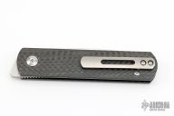 The EWC was designed by Ray Laconico and produced by Monterey Bay Knives. It features a satin finished blade with notched front flipper. This knife does not lock and has a double detent system. Carbon fiber scales with a tip up bead blasted titanium clip. Excellent condition. Comes with zippered case.
