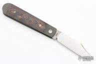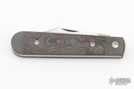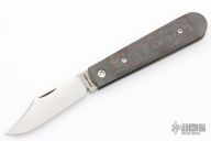 This Big Bro Jack slipjoint model by Jack Wolf Knives features a satin finished clip point blade with nailnick. The handle has integral bead blast finish pinched and fluted titanium bolsters and liners, carbon fiber scales with a stainless spring. Comes with box, metallic tube with Sean Tiffany artwork, leather slip, sticker and microfiber cleaning cloth. New from Maker!
