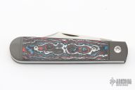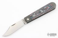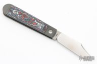 This Big Bro Jack slipjoint model by Jack Wolf Knives features a satin finished clip point blade with nailnick. The handle has integral bead blast finish pinched and fluted titanium bolsters and liners, carbon fiber scales with a stainless spring. Comes with box, metallic tube with Sean Tiffany artwork, leather slip, sticker and microfiber cleaning cloth. New from Maker!