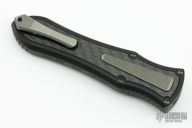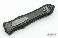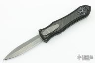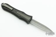 This knife is a Deadlock Model C by Grant and Gavin Hawk. It has a double-edged stonewashed blade. The handle has a carbon fiber and black aluminum frame with a tip down spring clip, titanium. The thumb slide on the handle is also titanium and handle has titanium overlays. Comes with a cloth pouch. Grant and Gavin Hawk set out to create a double action OTF with no blade play.... They did it, NO blade play. Comes with tool, cloth pouch. Excellent Condition.