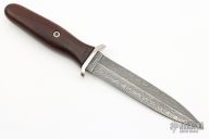This limited edition dagger by Boker has a double edged Damascus blade with Applegate and Fairbairn's names on it, .172" blade stock and 1.079" blade depth, hidden tang construction. The handle has stainless steel guard with a contoured wood handle. Numbered 229/300 on the hilt. Includes original wood box and paperwork. Excellent condition.
