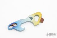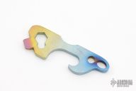 This titanium pocket tool by Mummert knives features an anodized and tumbled finish and is .207" thick. It has a bottle opener, prybar, screw driver and two hex openings, 3/8" and 1/4". Comes with original bag. Excellent condition.