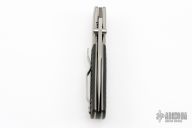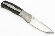 This liner lock by John W Smith features a hand rubbed satin finish spear point blade with dual thumbstuds. The handle has bead blasted titanium dovetailed bolsters, black G-10 scales and backspacer, bead blasted titanium liners, and a tip up titanium clip. Perfect function, strong lock up, nice detent and blade seating is dead center. Very nice fit and finish. Excellent Condition. Comes with a velcro case.