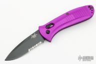 Mel Pardue design. Ambidextrous Auto Axis Pull Button Release - allows for automatic opening with either hand by pulling either Axis button back (buttons on each side of the handle). Integrated spine mount safety. Bi-directional machined handle grip for a superior sure grip. Includes the original box and papers. Excellent condition.