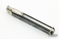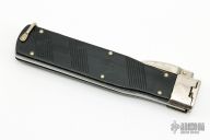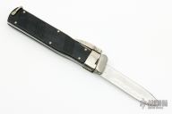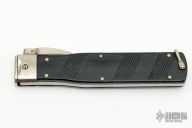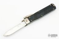 This Gravity Knife by WKC features a drop point blade. The handle has nickel silver fittings and black scales, lanyard bail. Old and a little rough, but still functions. Has scratches and dings. Fair condition. Dated 1961 inside the lid.