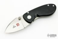 This SLB Knife by Al Mar knives features a drop point blade with a single thumbstud and a notched thumbrest. The handle is composed of black micarta over stainless steel liner, the clip is missing. Excellent Condition.