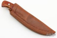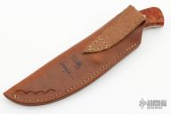 "I have been a knife maker since 1983. I got my start watching George Herron in his shop. He has always been a mentor, answering all of my questions and helping with the little problems of knifemaking. Most of my work is geared toward hunters. Since the most important part of the hunt is not the gun, no matter how much it costs, but a knife that will get the job done comfortably and quickly. I also build a few boots and fighters. All blades are ATS-34 that are professionally heat-treated to a Rockwell 59. All guards, bolsters, and pins are 303 Stainless. All knives are serial numbered. The sheaths are pouch type and are wet-formed to fit each knife."