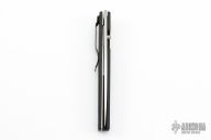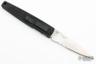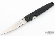 Boguszewski design folder by Benchmade with satin finished partially serrated blade, single thumbstud. Black coated aluminum handle with linerlock. Tip down carry black stainless steel clip. Has a few light scuffs on the handle, otherwise excellent condition.