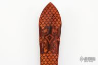 This Bone Breaker features full laser engraved wood construction. Led filled center. Comes with leather tag. Excellent condition.