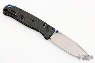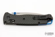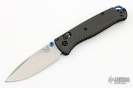 The 535-3 Bugout knife is built with a carbon fiber handle and a satin finished blade with a plain cutting edge.