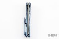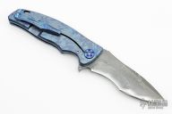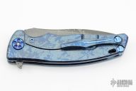 This Subara framelock flipper by Kiku Matsuda features a recurve blade with flipper. The handle has an anodized and tumbled titanium frame with tip up clip and anodized titanium hardware. Rides on bearings, nice detent, lockup and blade seating. Comes with a zippered case. Excellent condition.