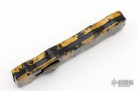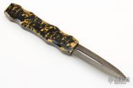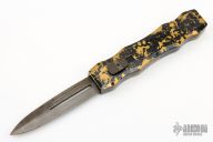 This Sand Shark OTF automatic features a Damascus double edge blade and black/gold aluminum handle. The Sand Shark was a limited production and is no longer being made. Excellent condition. Very rare with a Damascus blade.