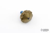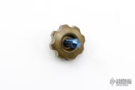 This Spin Top by Marfione Custom Knives features a tumbled brass body with ceramic ball and a blue anodized titanium stem. Two piece design. S/N 028. Dated 06/2016. Excellent condition.