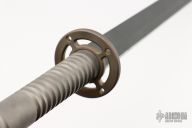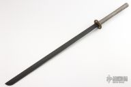 This sword by Chad Nichols is... there's no other way to say it.... BAD ASS. Features a milled 3V blade with black coating, .250" blade stock and 1.365" blade depth. The handle has a blasted and bronzed titanium tsuba and grip. Comes with zippered case. New from maker.