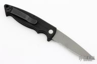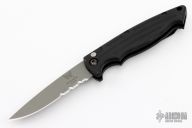 This Mini Reflex by Benchmade features a partially serrated blade and a black aluminum handle with black stainless steel tip up clip, lanyard hole at the butt and safety on the spine. Comes with original box and papers. Excellent condition.