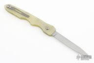 This WASP from Rob Dalton features a bead blasted clip point blade, yellow G-10 handle and a bead blast titanium clip, tip up carry. Strong coil spring opening. Excellent condition.