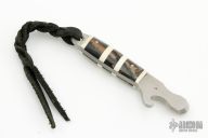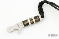 This knife pick features a satin finished pick and bottle opener with a full tang construction. The handle has mammoth and walrus scales. Includes and felt case. #5. Light spotting is visible otherwise the pick is in Excellent Condition.
