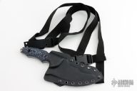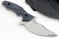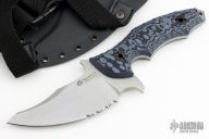 This Badger by Maserin features a stonewashed partially serrated blade with .222" blade stock and 1.740" blade depth, full tang construction with black/slate blue G-10 scales. Comes with a kydex sheath, original box and papers. Excellent condition.
