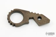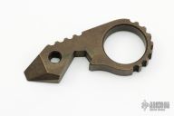 This Micro G5 Bandicoot from J. Woytaz features orange peeled titanium construction. 0.339" thick with pry tip, 1/4" hex bit driver, bottle opener and 0.769" finger hole. Excellent condition. Comes with COA.