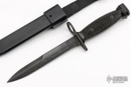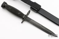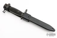 This is a Vietnam Era M7 bayonet for the M16 rifle by Conetta. Includes a plastic sheath for an M10 bayonet, not original. Has some sheath marks, otherwise good condition.