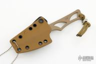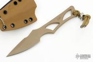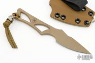 Enyo - a fitting name for this knife, Enyo, was an ancient goddess of war, acting as a counterpart and companion to the war god Ares. This companion knife can be worn around the neck or in a pocket / inside the waist band (IWB). The Enyo’s design makes it a comfortable everyday carry fixed blade with great ergonomics. Enyo is perfectly suited for daily cutting tasks, and is always ready to assist the user. The form fitted Kydex sheath. Pewter Spartan helmet bead on lanyard. This Enyo has a Flat Black coating (SpartaCoat – PVD – Tungsten DLC) and a black Kydex sheath. Has some scuffs, otherwise good condition.