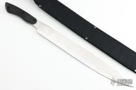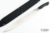 This Panga by Blackjack Knives features a satin finished blade, .111" blade stock and 1.761" blade depth, full tang construction with rubber scales. Comes with black nylon sheath. Has some scratches, otherwise excellent condition.