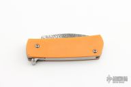 This Shamsher CA legal automatic EDC by Darriel Caston features a satin finished blade with a false top edge and laser engraving. The handle has orange paper micarta scales, stainless steel liners and backspacer. Nice action, lockup and blade seating. Excellent Condition.