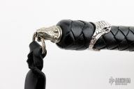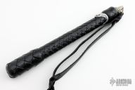 This is a Black Viper Blackjack by DD Whips. Spring core black kangaroo leather covered blackjack with cowhide wrist strap. Has a snake head ring near the butt and a snake head strap connector. New from maker. Comes with COA.