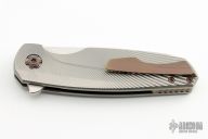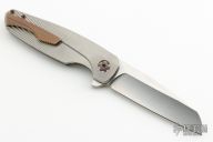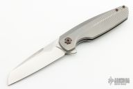 This Haptic by Holt Bladeworks features a tumble finished blade with a notched thumbrest and flipper tab. The handle features a milled titanium frame with an anodized titanium tip up pocket clip and matching hardware. Nice detent, lock up and blade seating. Includes the original tools, papers and padded zippered case. Excellent Condition.