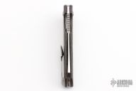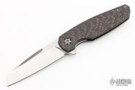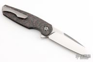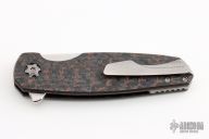 This Haptic by Holt Bladeworks features a tumble finished blade with a notched thumbrest and flipper tab. The handle features milled carbon fiber scales over titanium liners with a titanium tip up pocket clip and matching hardware. Nice detent, lock up and blade seating. Includes the original tools and papers. Excellent Condition.