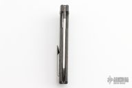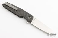 This Specter by Holt Bladeworks features a high polish tumble finish blade with a notched thumbrest and flipper tab.  The handle features a carbon fiber scales over a titanium frame with a matching tip up pocket clip. Nice detent, lock up and blade seating. Includes the original box and papers. Excellent Condition.