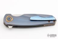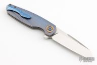 This Haptic by Holt Bladeworks features a high polished tumbled blade with a notched thumbrest and flipper tab. The handle features a milled and anodized titanium frame with a mokuti tip up pocket clip with hidden hardware. Nice detent, lock up and blade seating. Includes the original box, tools and papers. Excellent Condition.