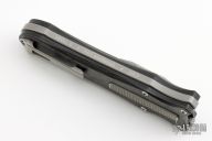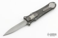 This knife is a Deadlock Model B. It has a bead blast finish dagger shape blade. The handle has a carbon fiber and titanium frame with a tip down titanium clip, bead blast finish titanium. The thumb slide on the handle is also titanium and handle has titanium overlays. Grant and Gavin Hawk set out to create a double action OTF with no blade play.... They did it, NO blade play. Excellent Condition.  Dated 2018. This one does not have the spring clip, which is an upgraded option.