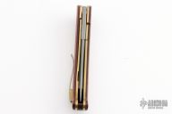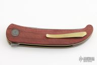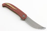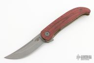 This Cyrus Persian by MassDrop is a Bob Terzuola design, it features a multiground acid tumble finished blade with flipper. The handle has red canvas micarta scales and backspacer, anodized titanium liners and tip up clip with hidden screws. Comes with original zippered case. Excellent condition.