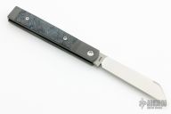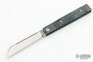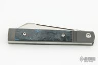This Feelgood Jack is a Doctor's Knife slipjoint model by Jack Wolf Knives featuring a satin finished clip point blade with nailnick. The handle has integral bead blast finish fluted titanium front bolsters and liners, carbon fiber scales with a stainless spring. Comes with box, metallic tube with Sean Tiffany artwork, leather slip, sticker and microfiber cleaning cloth. New condition.
