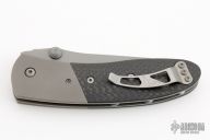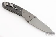 This Lightfoot LCC M/A by Microtech Knives is a Greg Lightfoot design, it has a stonewashed blade with dual thumbstuds and a notched thumbrest. The handle has bead blasted titanium bolsters, carbon fiber scales, stainless steel liners and clip, tip up carry. Dated 09/2000, #1952. Has some light scuffs and scratches, otherwise great condition.