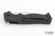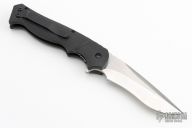 This Prototype Model 2 Assisted opening flipper by Walter Brend features a satin finished recurve blade with notched thumbrest and flipper. This one has a false top edge. The handle has a black aluminum frame with tip up black stainless steel clip and a lanyard pin at the butt. Excellent condition. This knife was one of the early prototypes and was in Walter's personal collection.