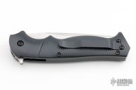 This Prototype Model 2 Assisted opening flipper by Walter Brend features a satin finished multi-ground tanto blade with notched thumbrest and flipper. This one has a false top edge. The handle has a black aluminum frame with tip up black stainless steel clip and a lanyard pin at the butt. The handle has the Nighthawk logo on the front. Excellent condition. This knife was one of two ever made and was in Walter's personal collection. They were intended to be a collaboration with Nighthawk that never panned out. Comes with original box.