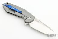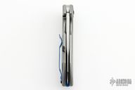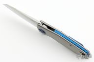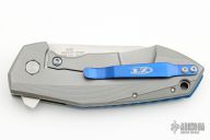 This ZT 0456 by Zero Tolerance features a satin finished clip point blade with swedge and flipper. The handle has a machined titanium frame over an anodized aluminum backspacer. Lanyard hole in pommel and stainless steel clip is positioned for tip up carry. Comes with a ZT box. Excellent condition. #7729