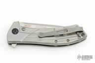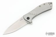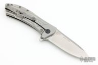 This 0801 Rexford Flipper #2128 has a stonewashed Elmax spear point blade with swedge. Handle is fluted titanium with black finished stainless steel tip up (RH/LH) clip and lanyard hole. Comes with a ZT box and papers. Excellent condition.