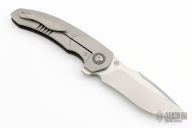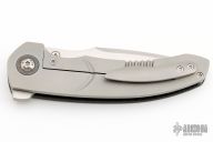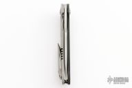 Designed by Walter Randolph and made by Alliance Designs this Deimos features a bead blasted blade with satin finished flats.  The frame is composed of carbon fiber and titanium complemented by a tip up titanium pocket clip.  Zirconium pivot collars. Nice detent, lock up, and blade seating. Comes with a zippered case. Excellent condition.