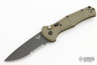 An explosive design, bound to take the battlefield by storm. The 9070SBK-1 Claymore is a slender push-button powerhouse, packed full of hidden features and inspired by one of the most notorious directional mines. Incorporating this air-hardening tool steel to Benchmade’s portfolio of premium materials, the Claymore blade has been crafted from CPM-D2 to provide ample toughness and edge retention. Manufactured in the USA, the Claymore has set the standard for closed break strength, making this Benchmade's toughest folder to date. Excellent condition.