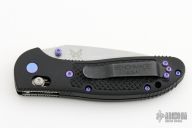 This Griptilian by Benchmade features a stonewashed drop point blade with dual thumbstuds. The handle has black FRN scales, stainless steel liners, has right or left tip up carry clip. Anodized hardware. Includes the original box and papers. Excellent Condition.