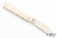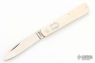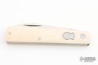 This Slipjoint by JH Lloyd features a satin finished blade with nail nick. The handle has mammoth ivory covers with stainless steel escutcheon, liners and spring. Has half-stop, flush in all positions. Has a couple light scratches, otherwise excellent condition.