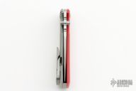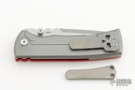 This Chaves Ultramar Redencion tanto features a satin finished blade with the Chaves logo. The handle is made up of red G10, stonewashed titanium, skull pocket clip (positioned for tip up carry), and a matching titanium backspacer. Comes with original box and an extra regular titanium pocket clip. Excellent condition.