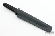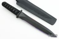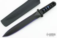 This Shogun Model Yori Toshi Tanto by Warren Thomas features a fingerprint anodized titanium blade with a carbidized edge, nearly sharpened top edge, and carbon fiber laminate on both sides, .640" blade stock overall, .110" thick titanium blade, and 1.537" blade depth. The handle has a carbon fiber tsuba, Japanese style wrap over stingray skin with anodized titanium menuki. Includes kydex sheath. Excellent condition. One of a kind!